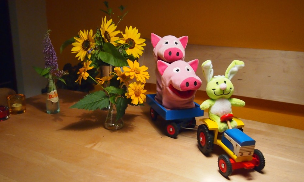 Die Schweine waren etwas beleidigt, dass sie diesmal nicht mitkommen durften auf die Reise. Für artiges Warten gab es aber eine schöne Überraschung.