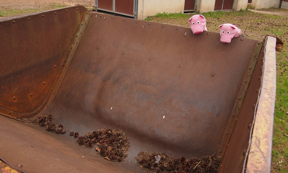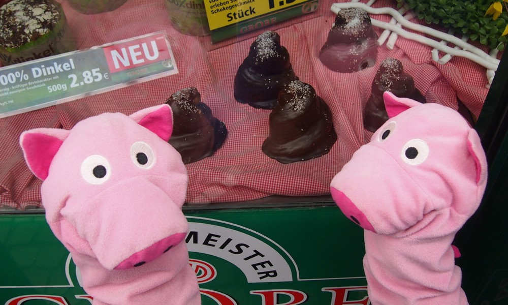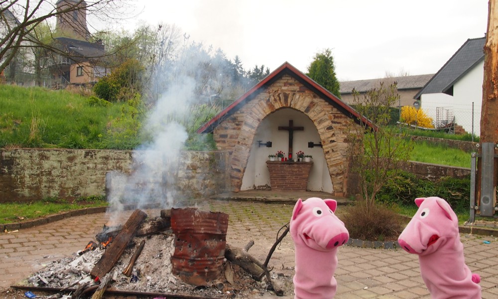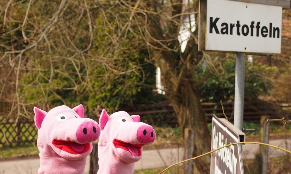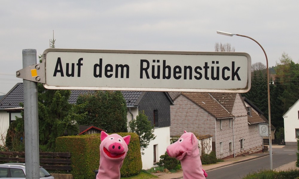 Die Schweine haben einen Ausflug in die Eifel gemacht. Alles war nach Schweinegeschmack, es gab Kartoffeln und rosa Häuser.