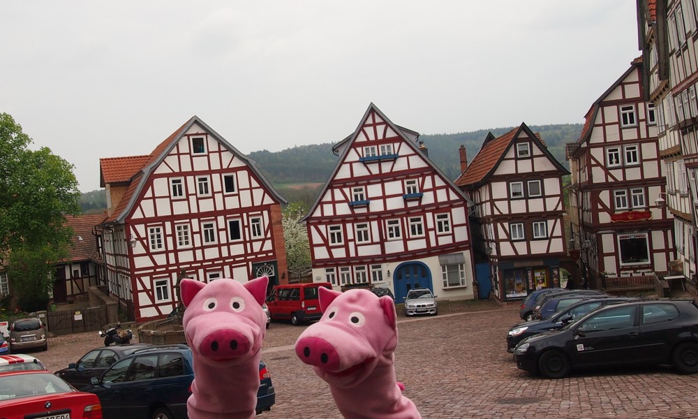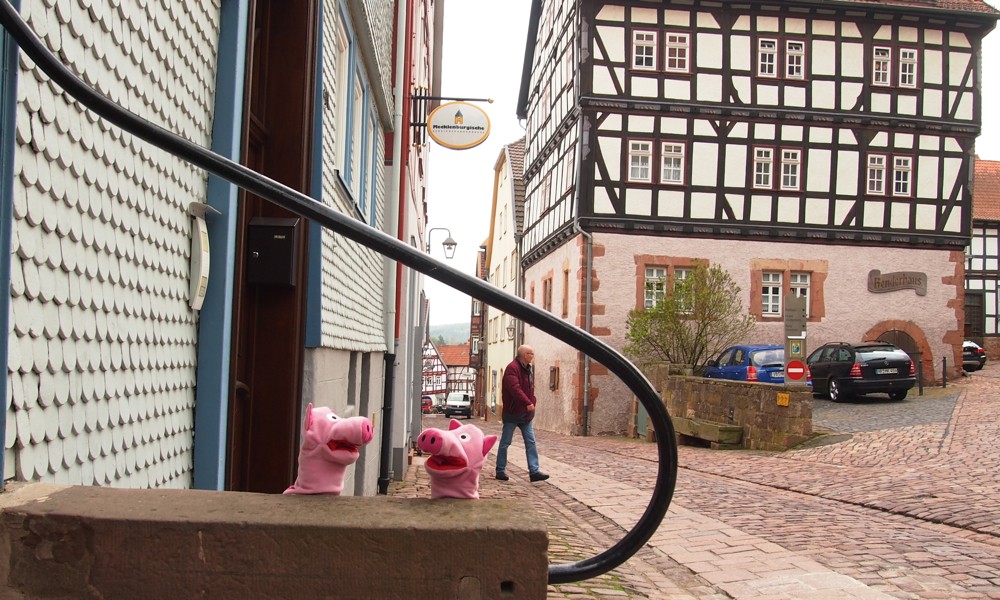 Im Hessenland gibt es einen Mangel an Namen. Darum teilen sich Städte und Flüsse die Namen und heißen gleich. So waren die Schweine in Schlitz an der Schlitz und in Fulda an der Fulda.