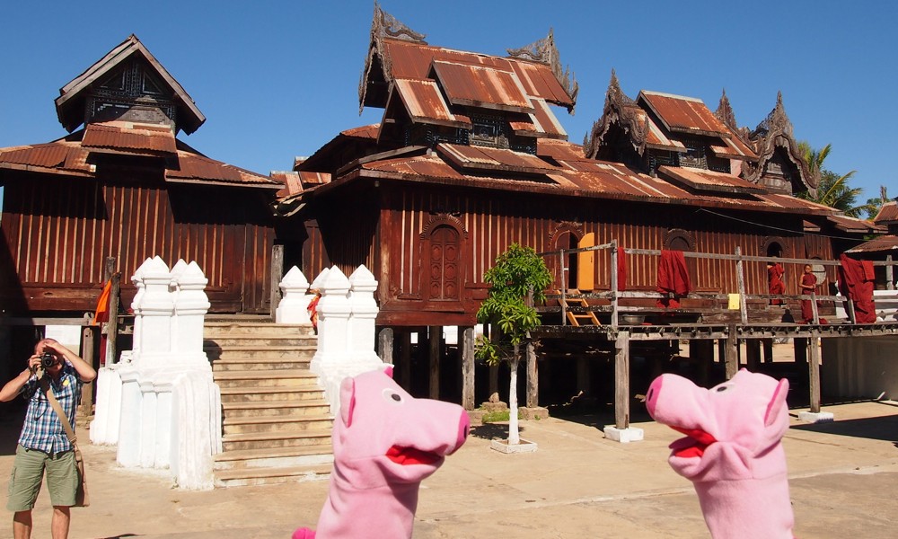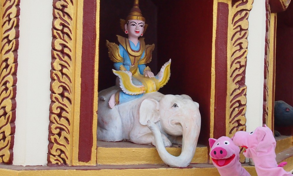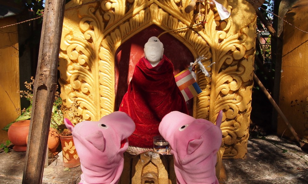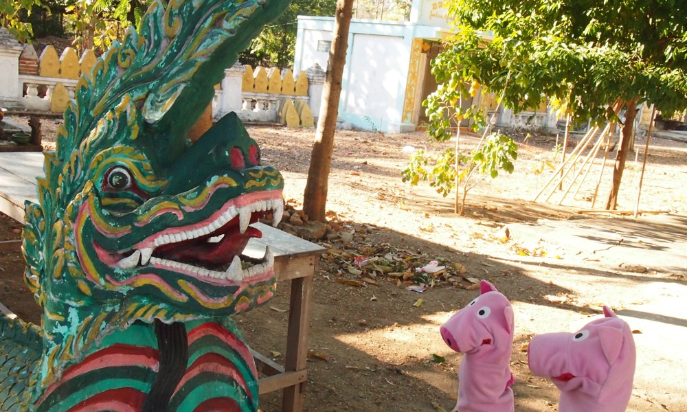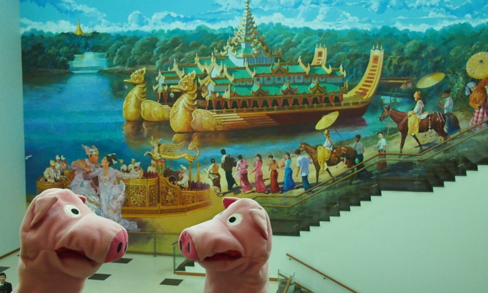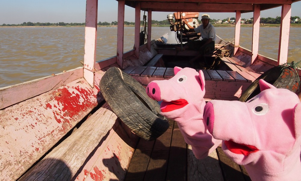 Die Schweine haben ihre erste Fernreise gemacht - es ging nach Burma! Dort hatten sie ein strammes Besuchsprogramm, und mit vielen verschiedenen Verkehrsmitteln wurde das Land bereist. Außerdem haben die Schweine manches Abenteuer durchgestanden. Weitere burmesische Schweinebilder kommen nächste Woche!