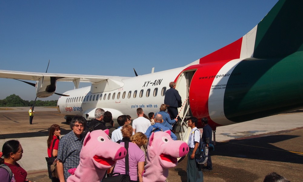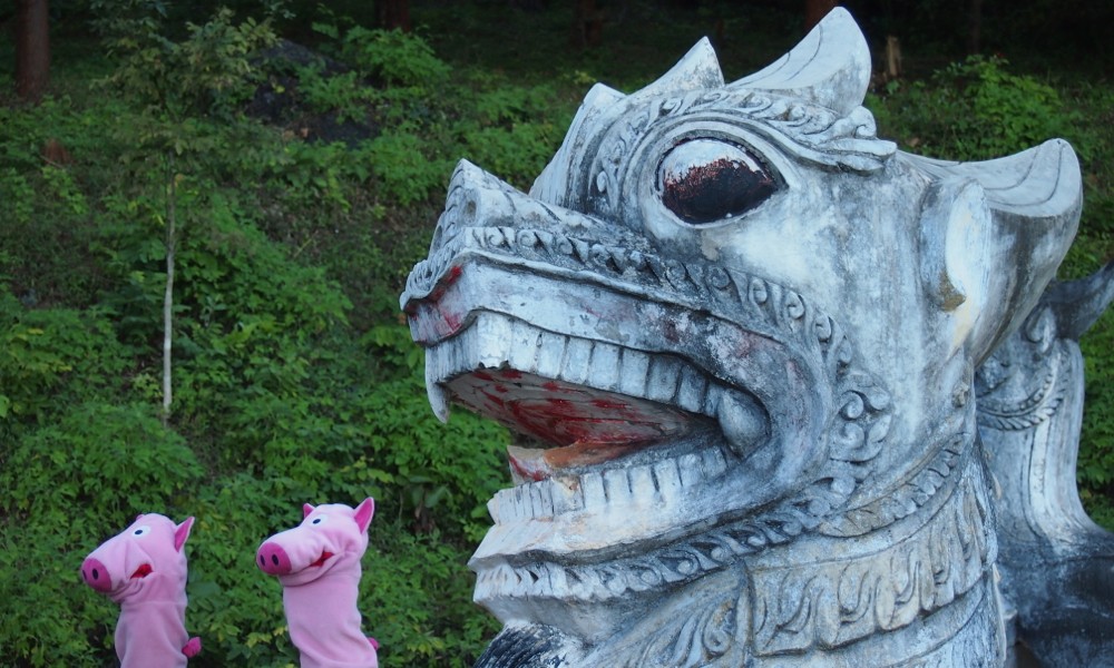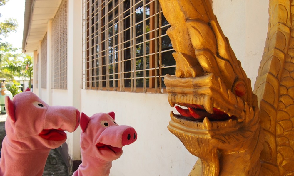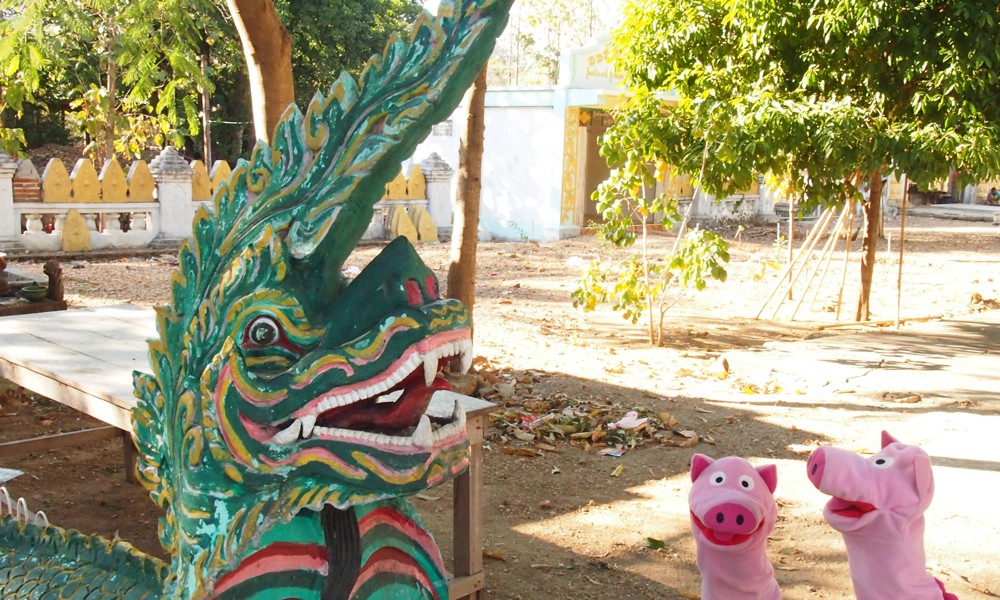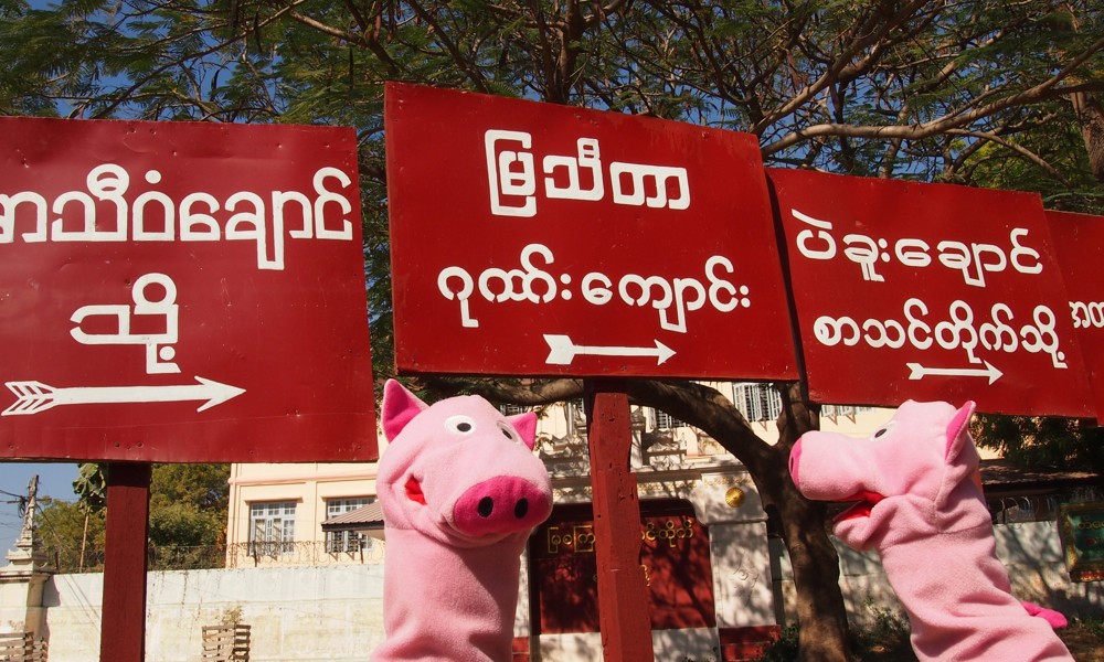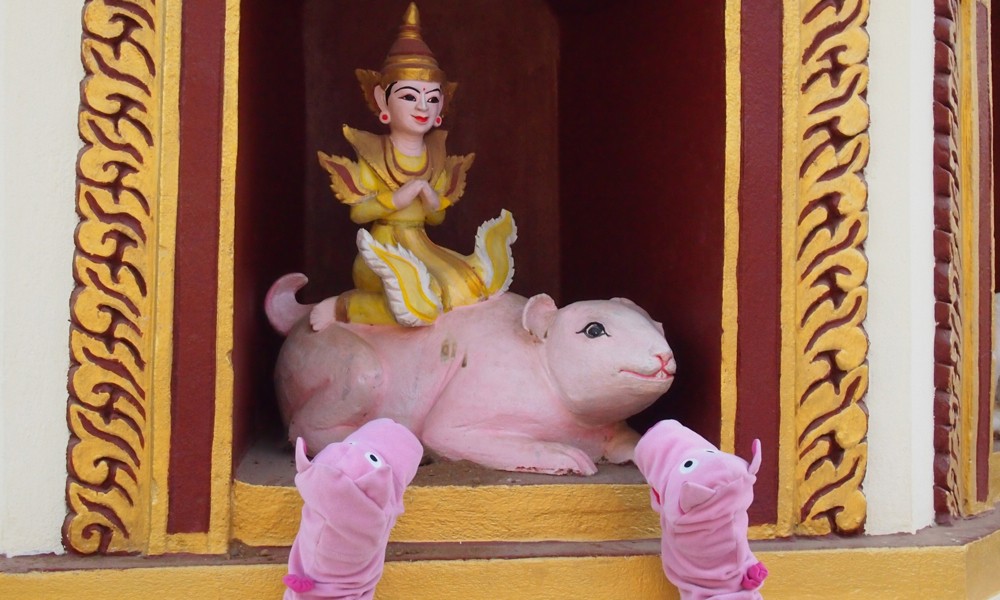 Die Schweine haben ihre erste Fernreise gemacht - es ging nach Burma! Dort hatten sie ein strammes Besuchsprogramm, und mit vielen verschiedenen Verkehrsmitteln wurde das Land bereist. Außerdem haben die Schweine manches Abenteuer durchgestanden. Weitere burmesische Schweinebilder kommen nächste Woche!