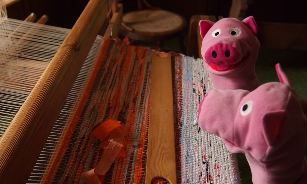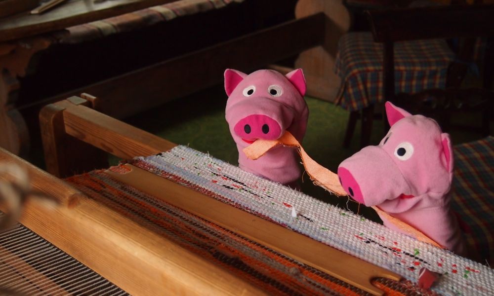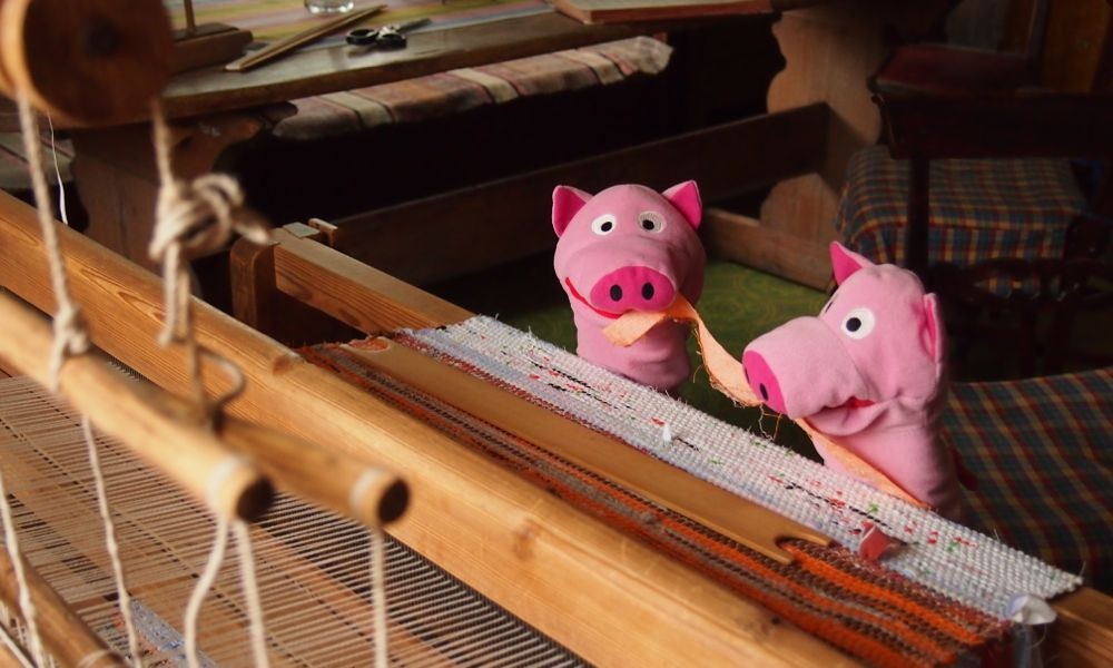 Die Schweine haben noch ein paar Fotos aus dem Hembyggdsgård gefunden. Ein Hembyggdsgård ist ein Heimathof in Schweden. Dort wurde gesponnen und gewebt, was das Zeug hält.