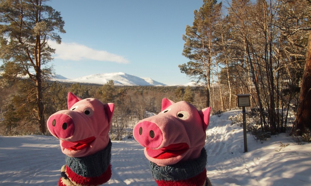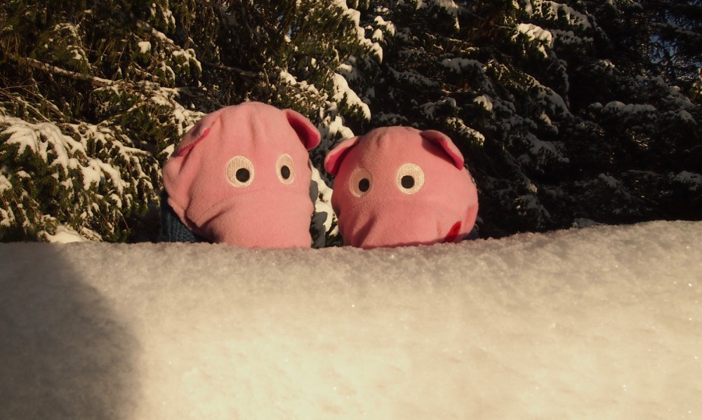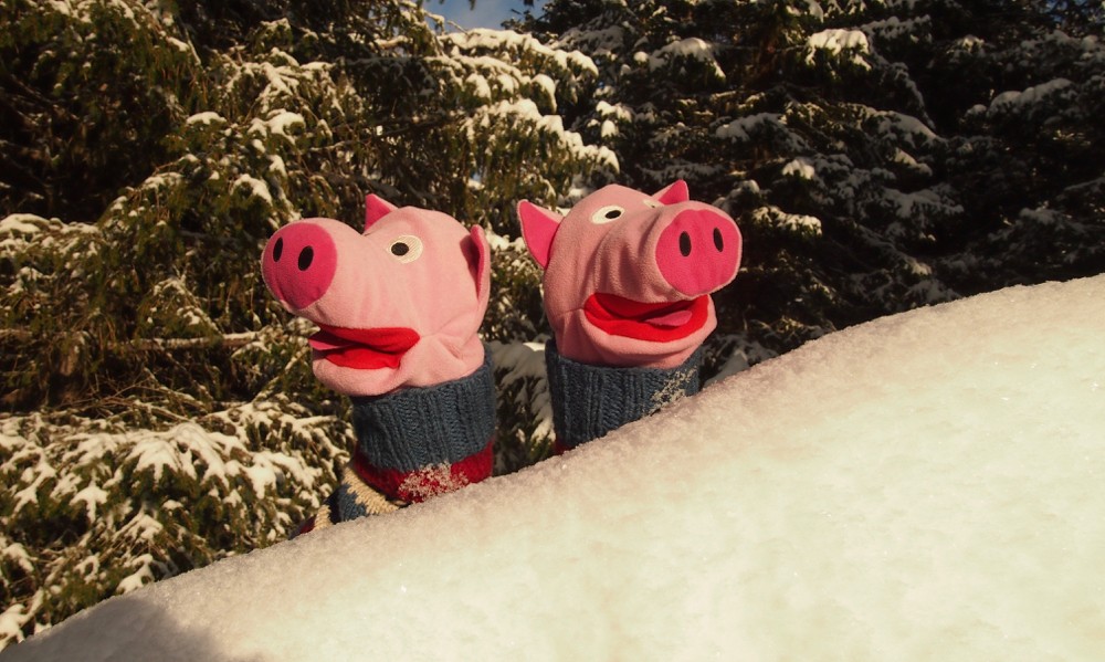 Die Schweine wollten mal einen richtigen Winter sehen und haben sich auf den Weg in die schwedischen Berge gemacht. Da gab es reichliche und herrliche Landschaft, allerdings fiel ein eklatanter Mangel an Kartoffeln auf.