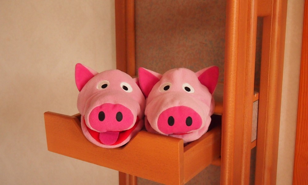 • Unterwegs haben die Schweine in einer Schublade übernachtet (schlanke Schweine)