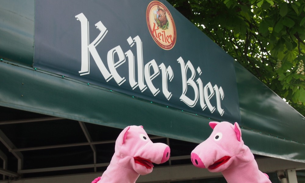 • Zur Stärkung möchten die Schweine erst einmal ein Keiler-Bier.