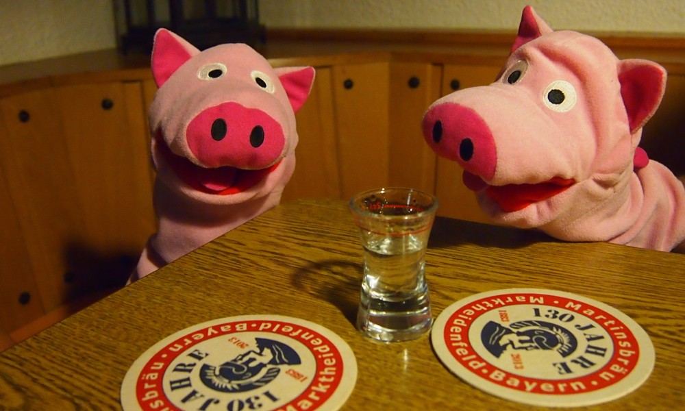 • Abends bekommen die Schweine Schnaps serviert (Kartoffelbrand).