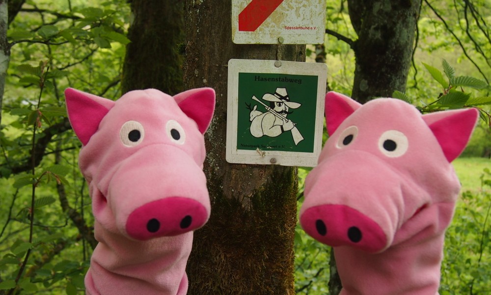 Die Schweine haben einen Ausflug in den Spessart gemacht. Dort soll es ja viele Räuber geben. Die Schweine haben Vorsicht walten lassen und sind ganz gut durchgekommen.