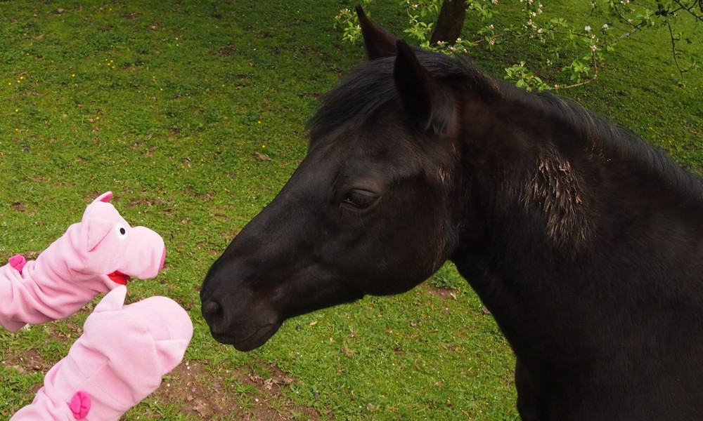 • Da drüben ist ein Pferd, vielleicht weiß das etwas über die Räuber.