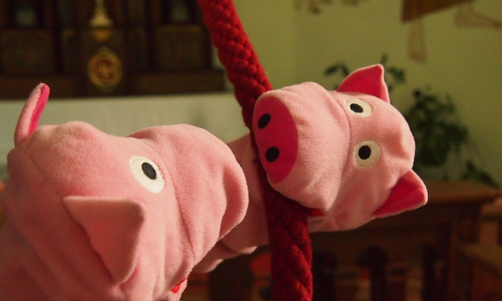 • Am Rathaus in Obernau endet die Wanderung. Ohne Räuber, aber mit Schweinen!