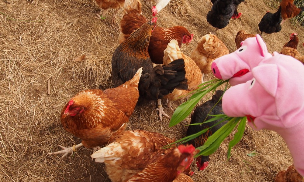 • An der Pforte machen sich die Schweine nützlich und begrüßen Gäste.