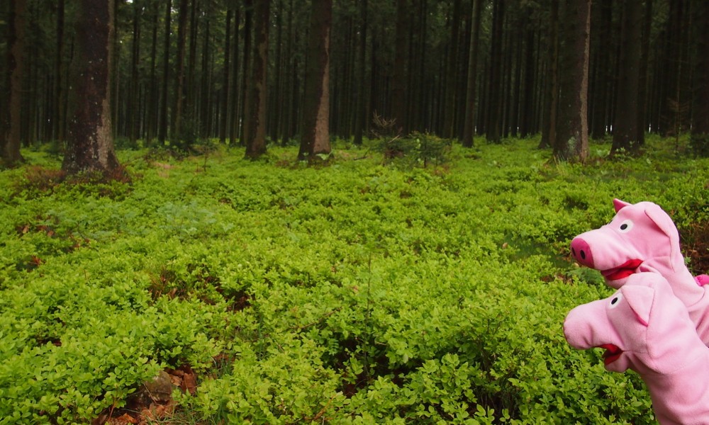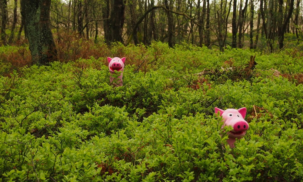 Die Schweine wandern durch ein Blaubeerfeld im Venn.