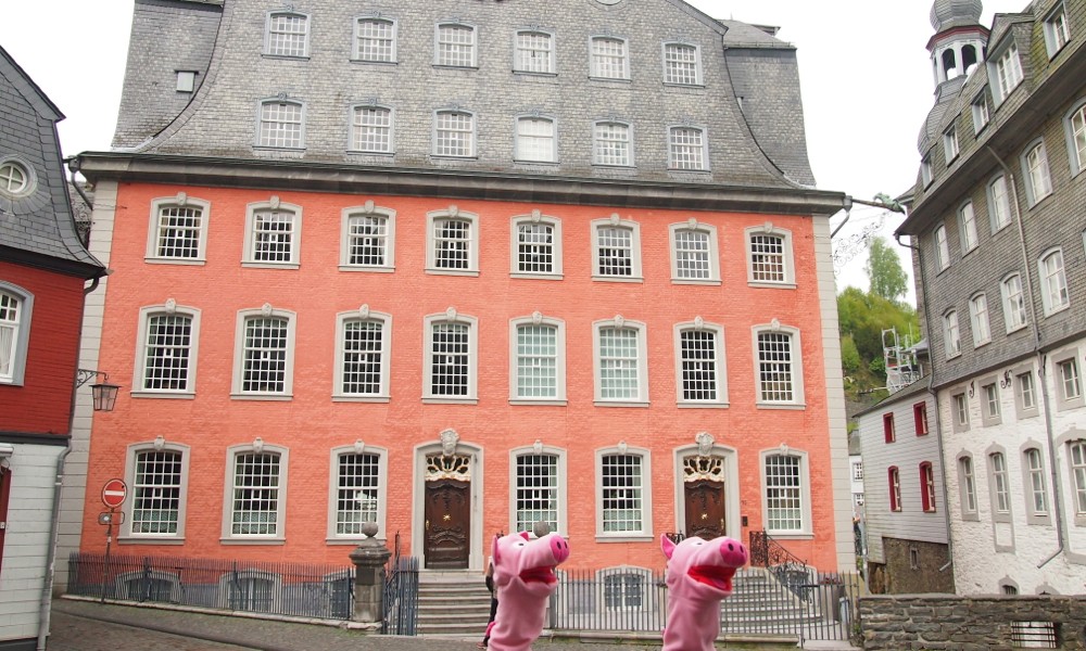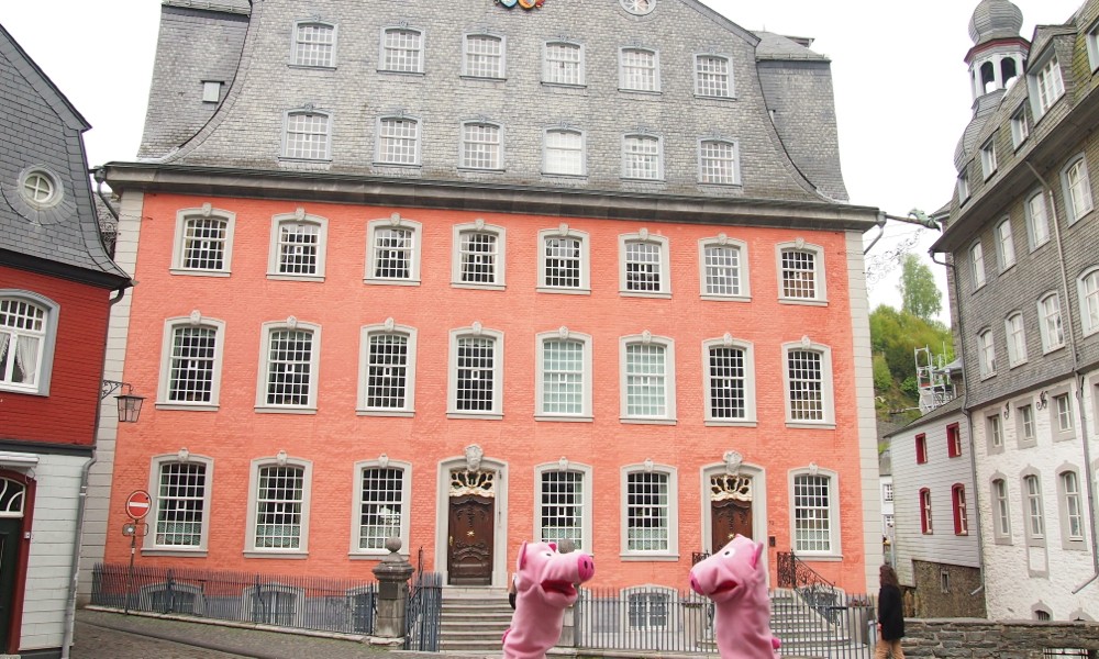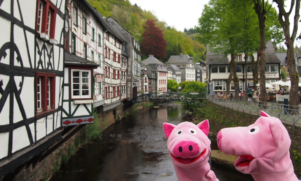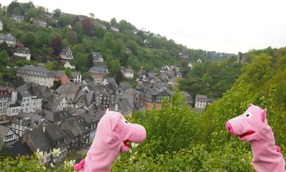 In Monschau an der Rur (ohne "h"): viele alte Häuser.