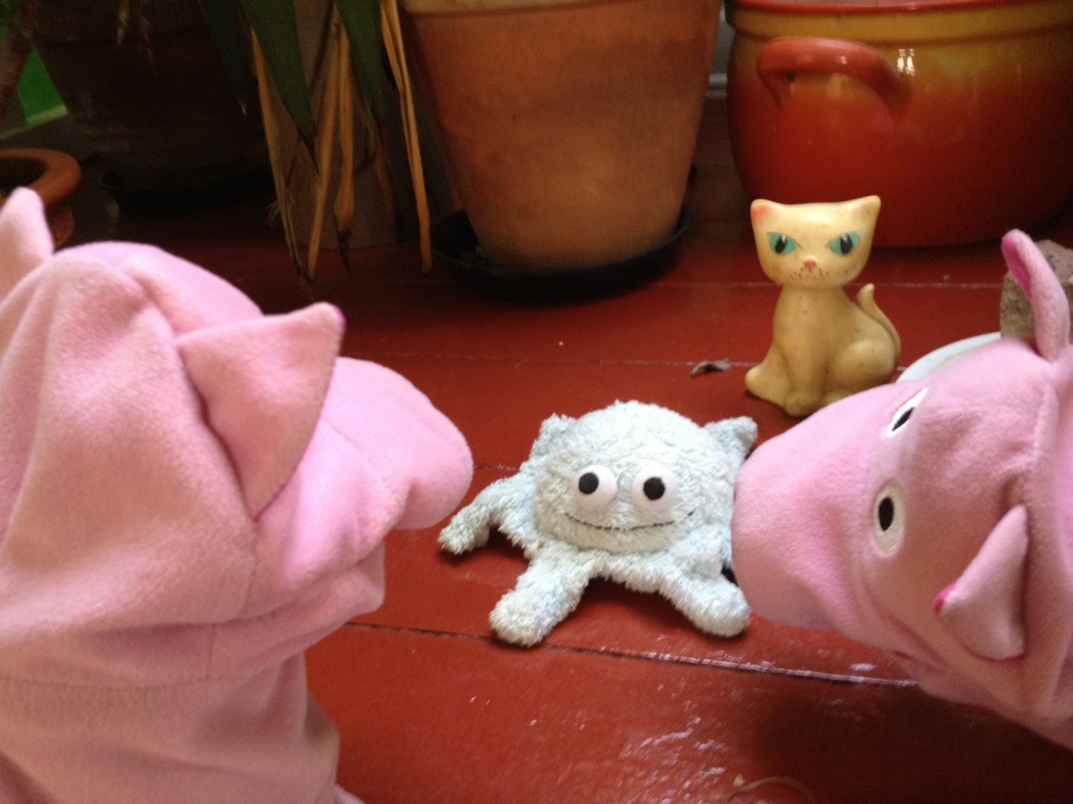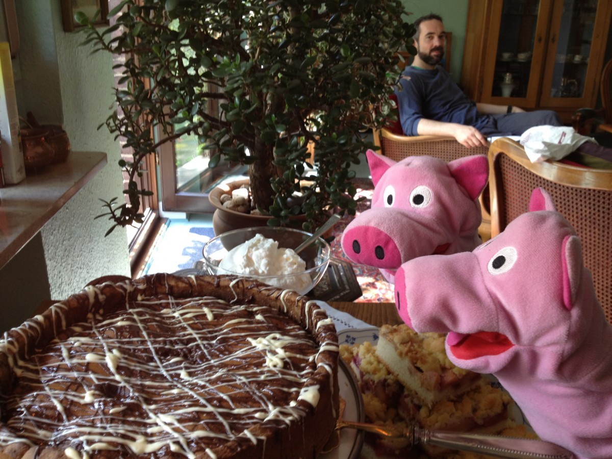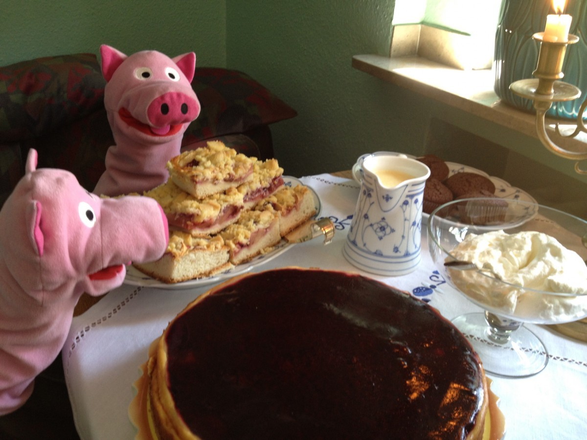 Heute waren die Schweine bei Carl eingeladen. Bei Kaffee und Waffeln wurde geplaudert und gespielt.