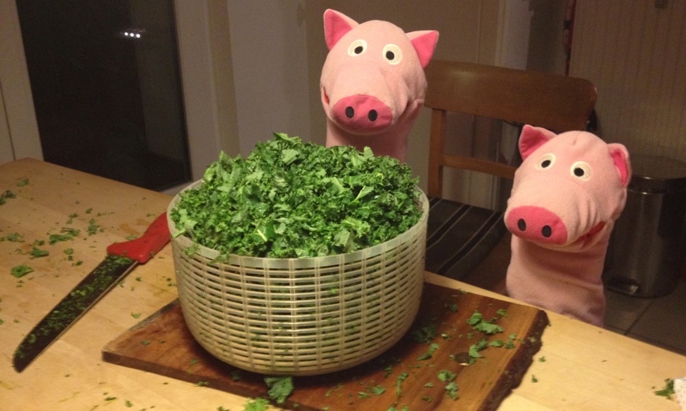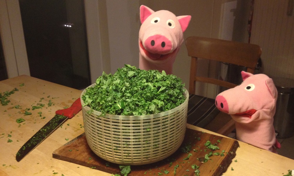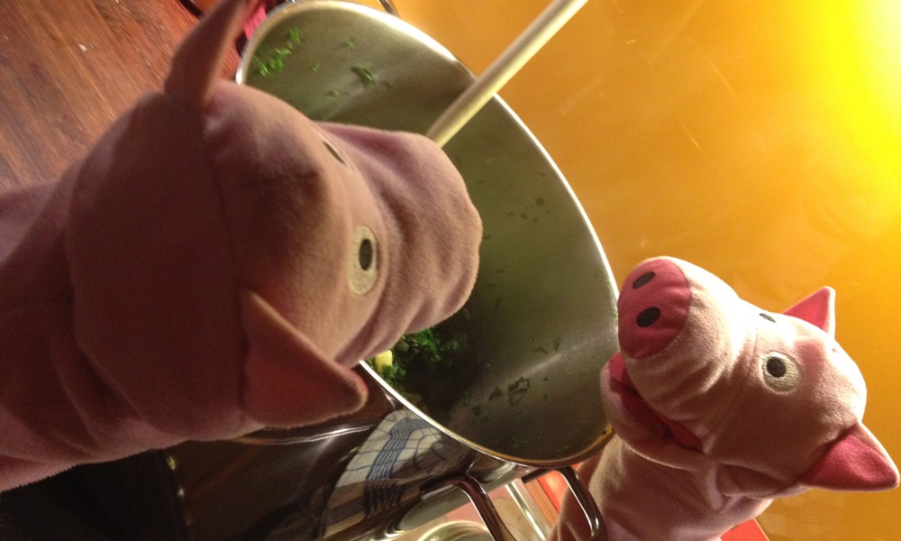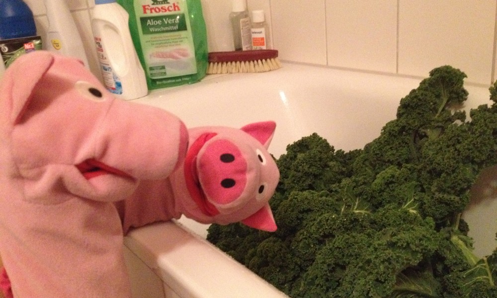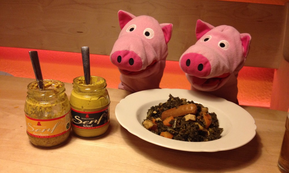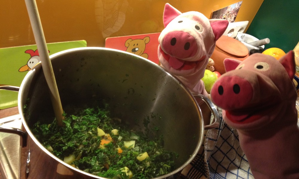 Die Schweine haben auf dem Markt einen großen Sack Grünkohl erstanden und zu Eintopf verarbeitet.