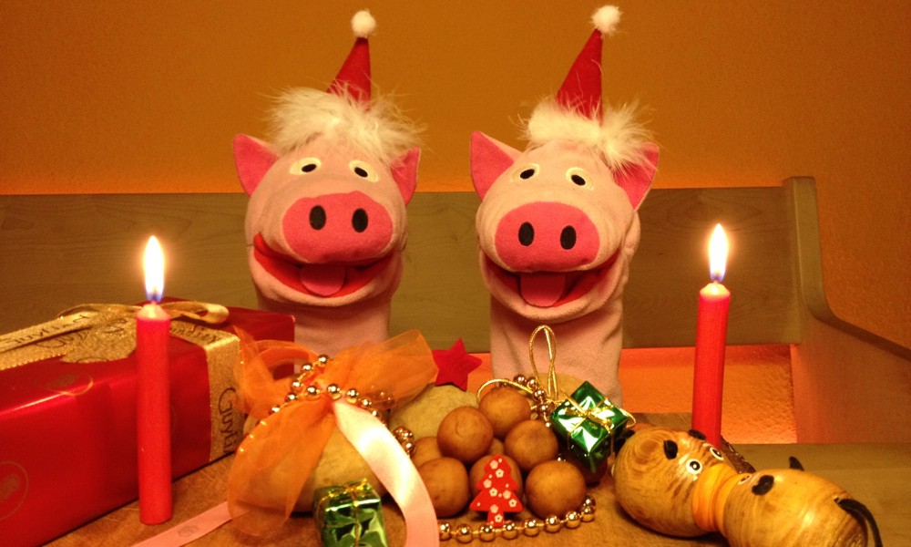 Die Schweine haben die Weihnachtstage mit reichlich singen verbracht. Auch haben sie sich über Eierwärmer und Kekse gefreut. Sie hatten ein paar schöne Tage, auch wenn die Kapelle, wo sie frohlocken wollten, geschlossen war.