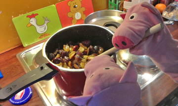 Die Schweine kochen ja sehr gerne - am liebsten Kartoffeln! Sie haben hier vier ihrer Lieblingsrezepte zusammengestellt. Es sind nicht nur Kartoffeln. Unterhalb von diesen Zeilen seht Ihr ein PDF-Dokument zum herunterladen. Die Schweine freuen sich über Rückmeldungen, wenn die Speisen nachgekocht wurden. Hat's geschmeckt? Oder waren es vielleicht doch zu viele Kartoffeln? Schreibt an: post@doppelschwein.de