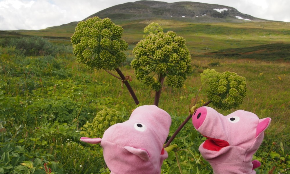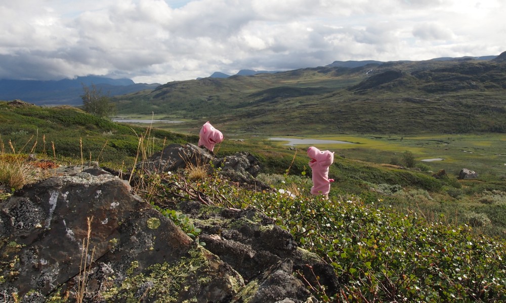 Die Schweine haben eine Reise nach Lappland (ins Fjäll, wie die Berge dort heißen) unternommen, wo sie letzten Winter waren. Hier sah alles anders aus! Bedauerlicherweise wachsen hier keine Kartoffeln. Dennoch gab es ein kulinarisches Erlebnis.