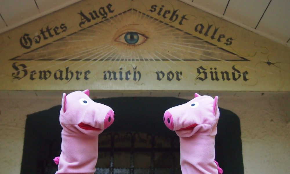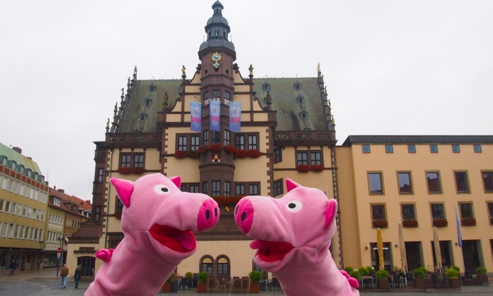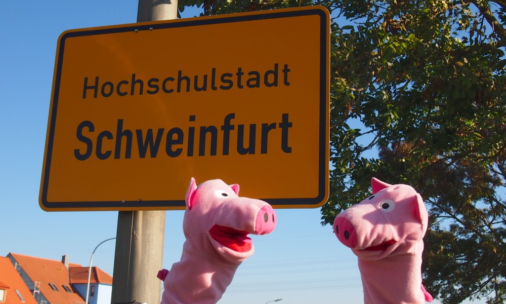 Am langen Wochenende haben die Schweine einen ausgedehnten Ausflug in den Steigerwald gemacht. Der Beginn der Reise in Schweinfurt versetzte die Schweine natürlich in Extase, genau wie mancher Ort entlang der Wanderroute.