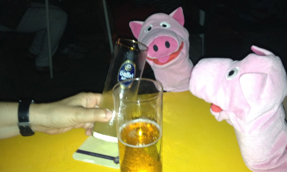 Nachmittags nehmen die Schweine gerne einen Gin in einem feinen Lokal.