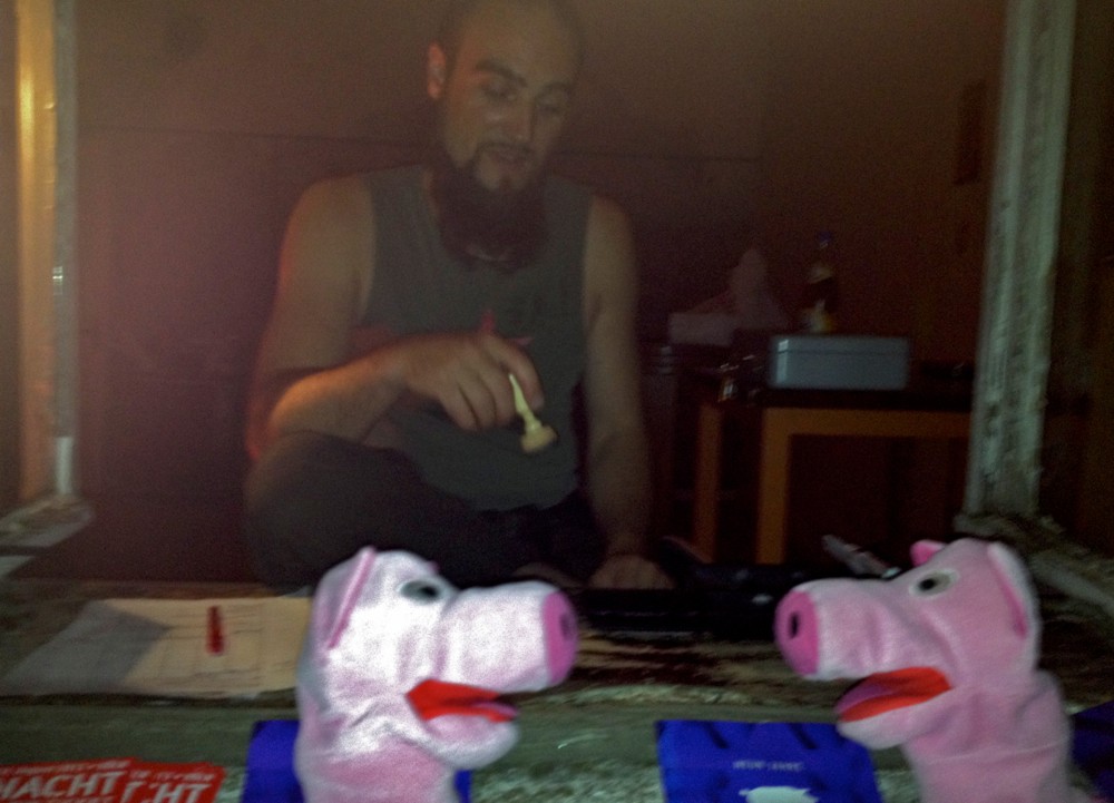 Die Schweine überlegen, ob sie mit ihren neuen Helmen in See stechen sollen ...