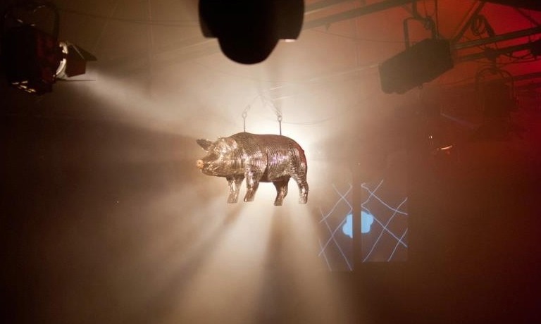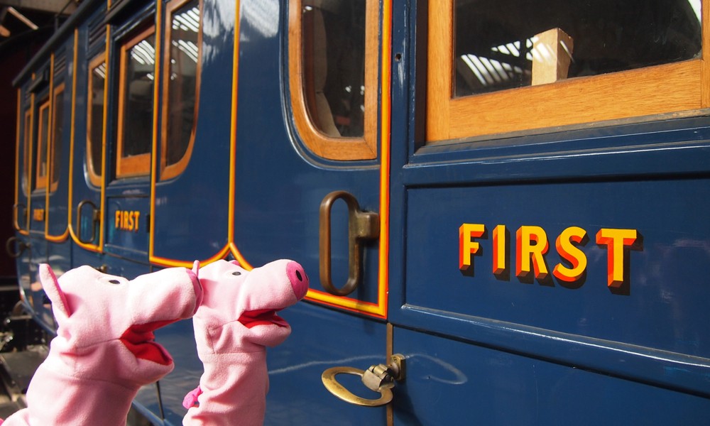 Wahlweise fahren die Schweine auch mit dem Zug (Erste Klasse).