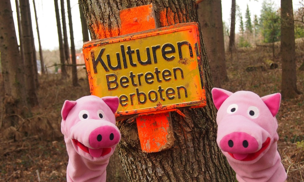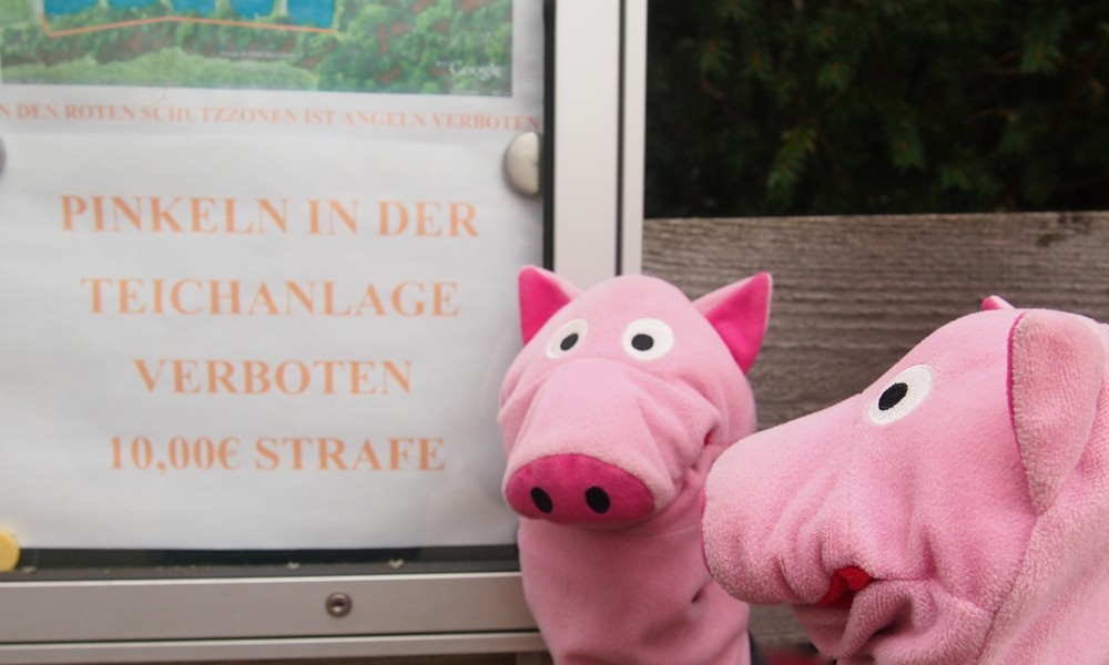 • Die Schweine müssen mal, haben aber keine 10 €.