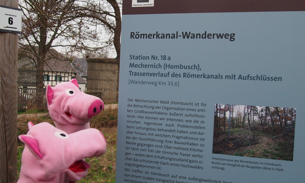 • Gelehrige Schweine informieren sich über den Römerkanal.