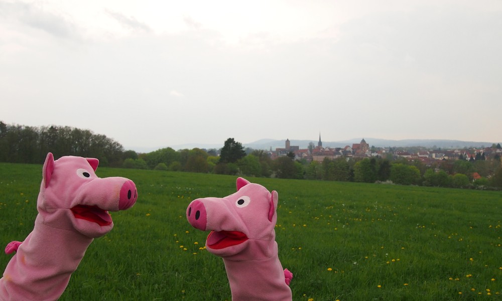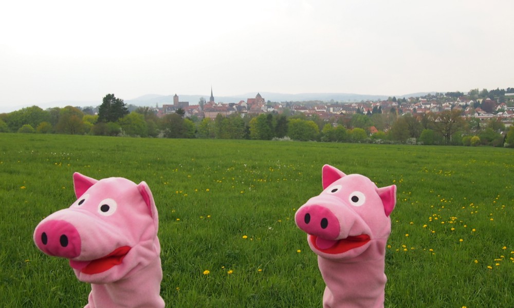 Die Schweine haben einen Ausflug in die Eifel gemacht. Alles war nach Schweinegeschmack, es gab Kartoffeln und rosa Häuser.