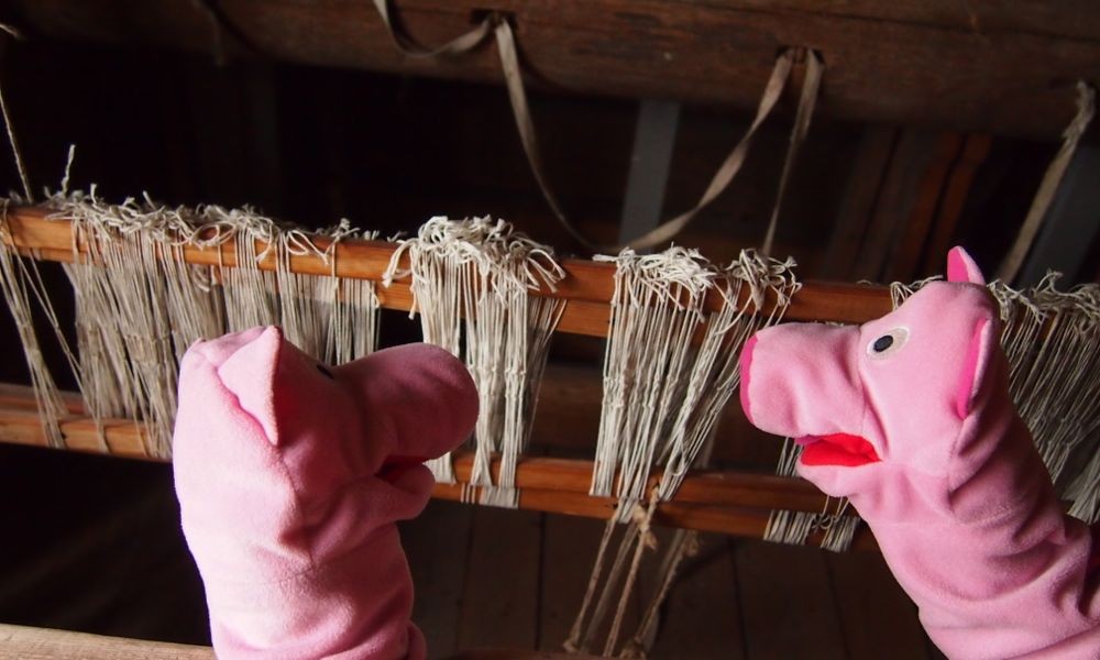 Die Schweine haben noch ein paar Fotos aus dem Hembyggdsgård gefunden. Ein Hembyggdsgård ist ein Heimathof in Schweden. Dort wurde gesponnen und gewebt, was das Zeug hält.