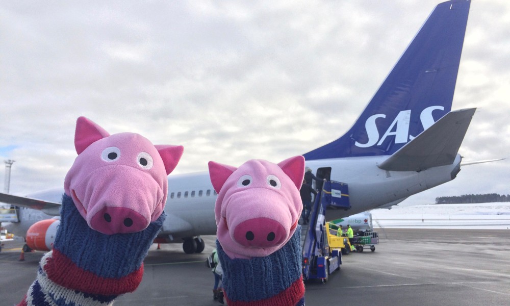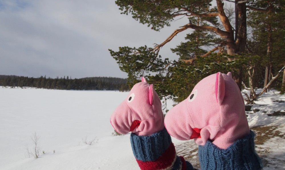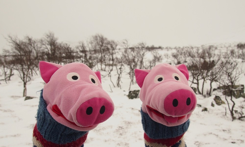 Die Schweine wollten mal einen richtigen Winter sehen und haben sich auf den Weg in die schwedischen Berge gemacht. Da gab es reichliche und herrliche Landschaft, allerdings fiel ein eklatanter Mangel an Kartoffeln auf.