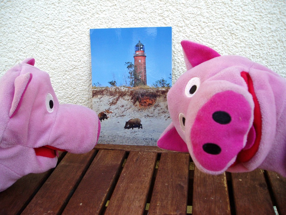 Die Schweine freuen sich sehr, denn sie haben eine Postkarte bekommen!